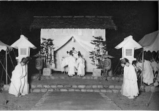 Προσπαθώ να αισθανθώ αυτό που πιθανώς ένιωσαν τόσοι και τόσοι άνθρωποι εκείνες τις φοβερές στιγμές. Μέσα σε απόλυτη ησυχία και με το σκοτάδι του χώρου να διασπάται περιστασιακά από τη λάμψη κάποιων κεριών, ακούω την τρομπέτα να σημαίνει την είσοδο της νεκρικής πομπής. Βλέπω από μακριά τους ασπροντυμένους ιερείς να ξεπροβάλλουν κάτω από την τεράστια τόριι του πάρκου και να κατευθύνονται αργά προς το ναό. Τέσσερεις από αυτούς, κουβαλούν στους ώμους τους το ιερό παλανκίνο, μέσα στο οποίο υπάρχει η λίστα των νεκρών που πρόκειται να ενταφιαστούν.